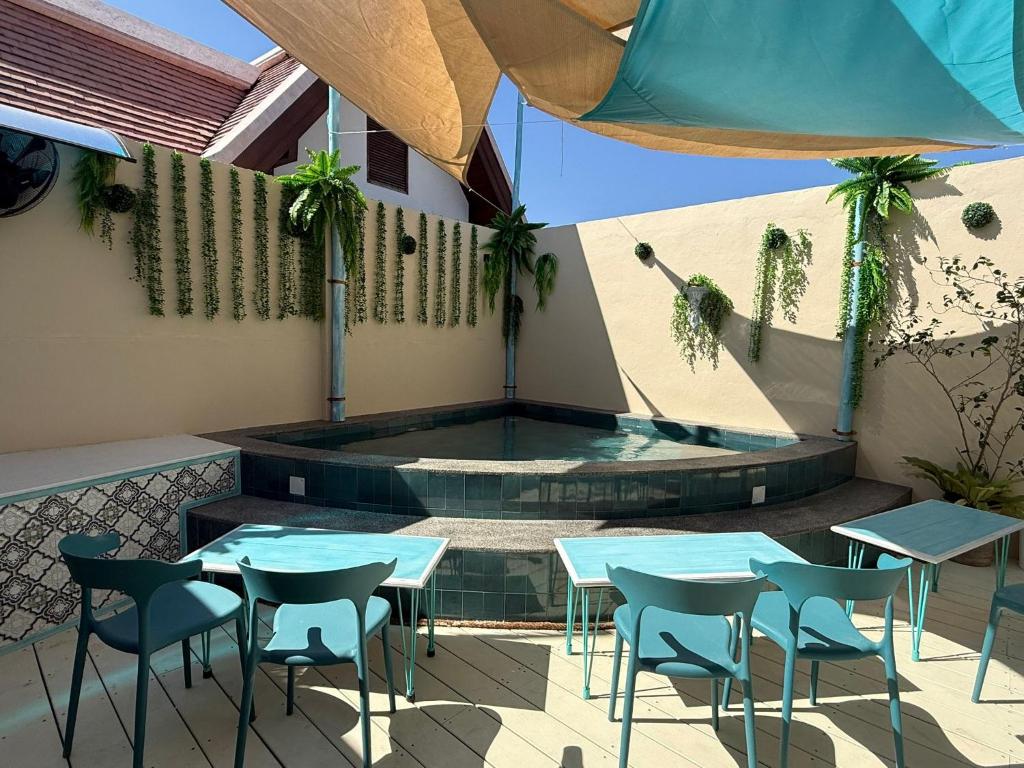 Our rooftop is a laid-back escape above the city, featuring a refreshing pool, a cozy bar, and a relaxed tropical atmosphere.